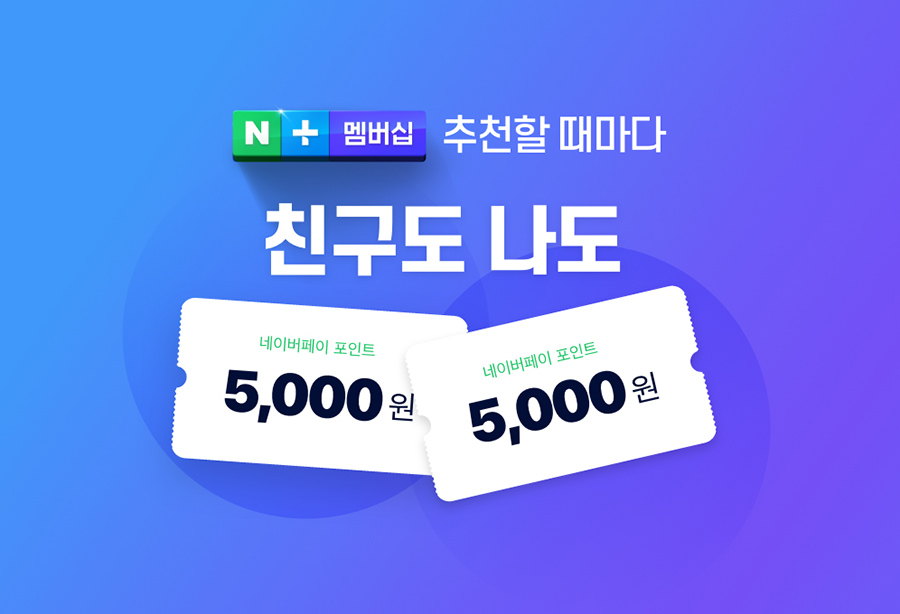 여하튼 네이버 서비스를 단 1개 이상이라도 사용하신다면, 이벤트 중일 때 꼭 네이버 플러스 멤버십 구독 서비스를 챙겨보시고, 5000원을 추가로 얻을 수 있는 제 친구초대 코드를 통해 추가 혜택도 누려보시기 바랍니다. 아래의 링크로 통해 가입하시면 친추 코드가 자동으로 기입되어 구독을 시작할 수 있습니다. :)