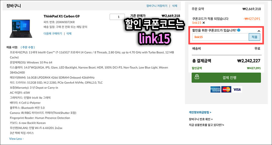 얼마전에 제가 가벼운 업무용 노트북을 추천하면서 레노버 씽크패드 X1 카본 9세대 모델에 할인쿠폰 'link15' 코드를 적용해서 구입하는 법에 대해서 포스팅을 정리했었는데요.