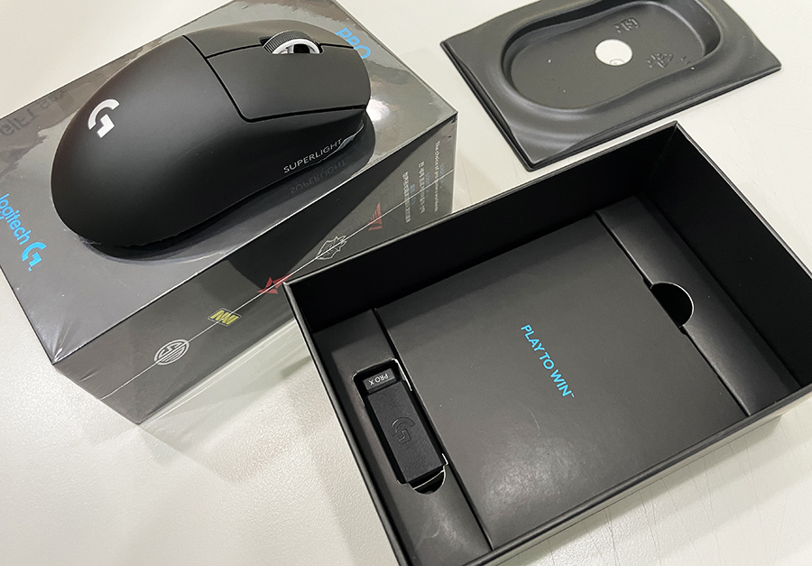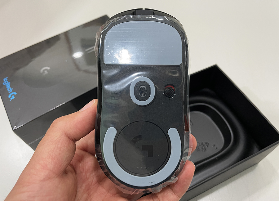 회사로 배달되었기에 바로 오픈하면서 아이폰으로 사진을 촬영해보았습니다. 가벼운 무게를 위해서 LED 라이팅도 최소하고 하고 기존 로지텍 G Pro 마우스와는 달리 버튼을 떼어내거나 붙이는 하드웨어 커스텀도 불가능 하지만, 63그램이라는 엄청나게 가벼운 무게가 모든 것을 용서합니다.