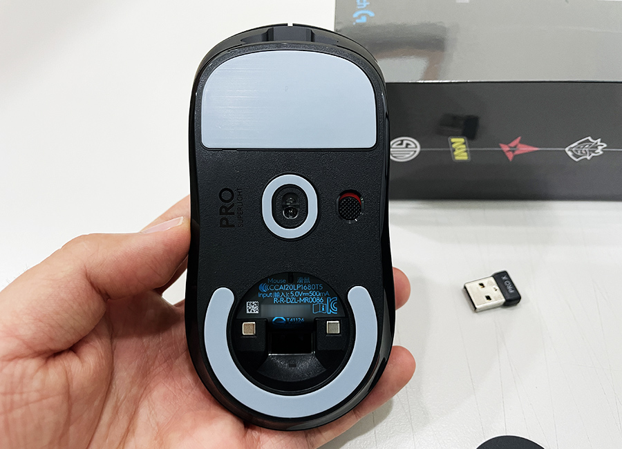 안쪽에는 리시버를 내장할 수 있습니다. 휴대할 때 리시버를 잃어버리지 않을 수 있어 좋은 것 같습니다. 로지텍 G903에는 USB 리시버를 넣는 공간이 없어서.. ㅜㅠ 엄청 힘들었는데, 로지텍 G Pro 슈퍼라이트에는 있어요 ㅎㅎ