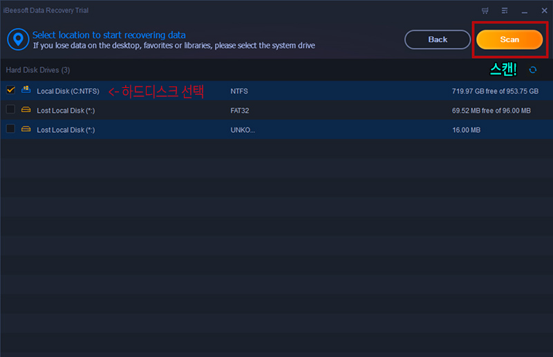 ๊ทธ ๋ค์์ผ๋ก๋ ๊น๋ํ๊ณ ๋ฏธ๋์ ์ธ UI๋ก ๋งค์ฐ ์ฌ์ด ์ฌ์ฉ๋ฐฉ๋ฒ์ ๊ฐ์ง๊ณ ์๋ iBeesoft Data Recovery ์ ๋๋ค.