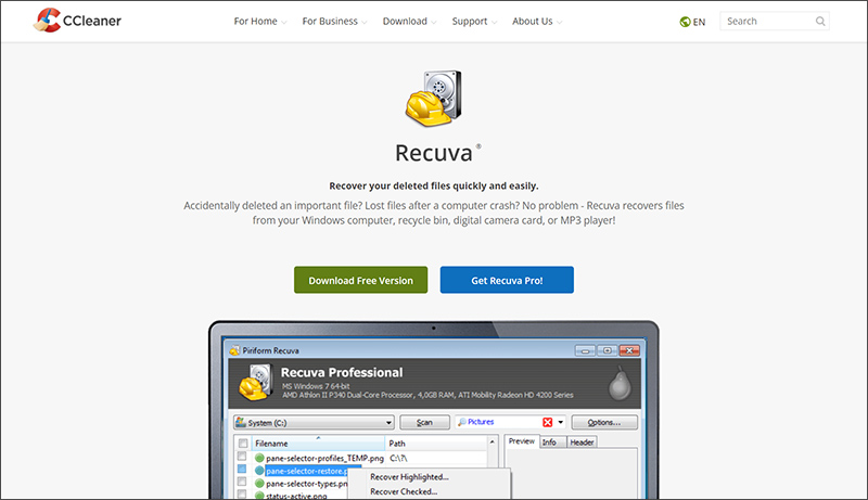 CCleaner๋ก ์ ์๋ ค์ ธ ์๋ ๊ฐ๋ฐ์ฌ๊ฐ ์ ๊ณตํ๋ ๋ณต๊ตฌ ์ํํธ์จ์ด์ธ Recuva์ ๋๋ค.