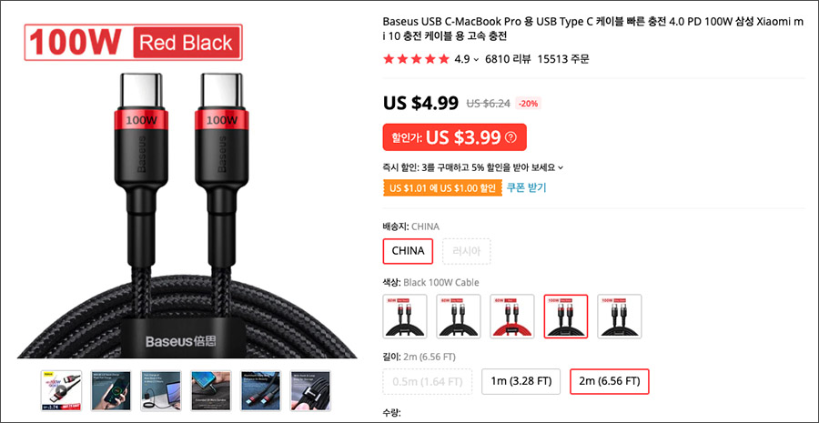 :: 100W USB C to C 케이블 구입하러 바로가기 ::