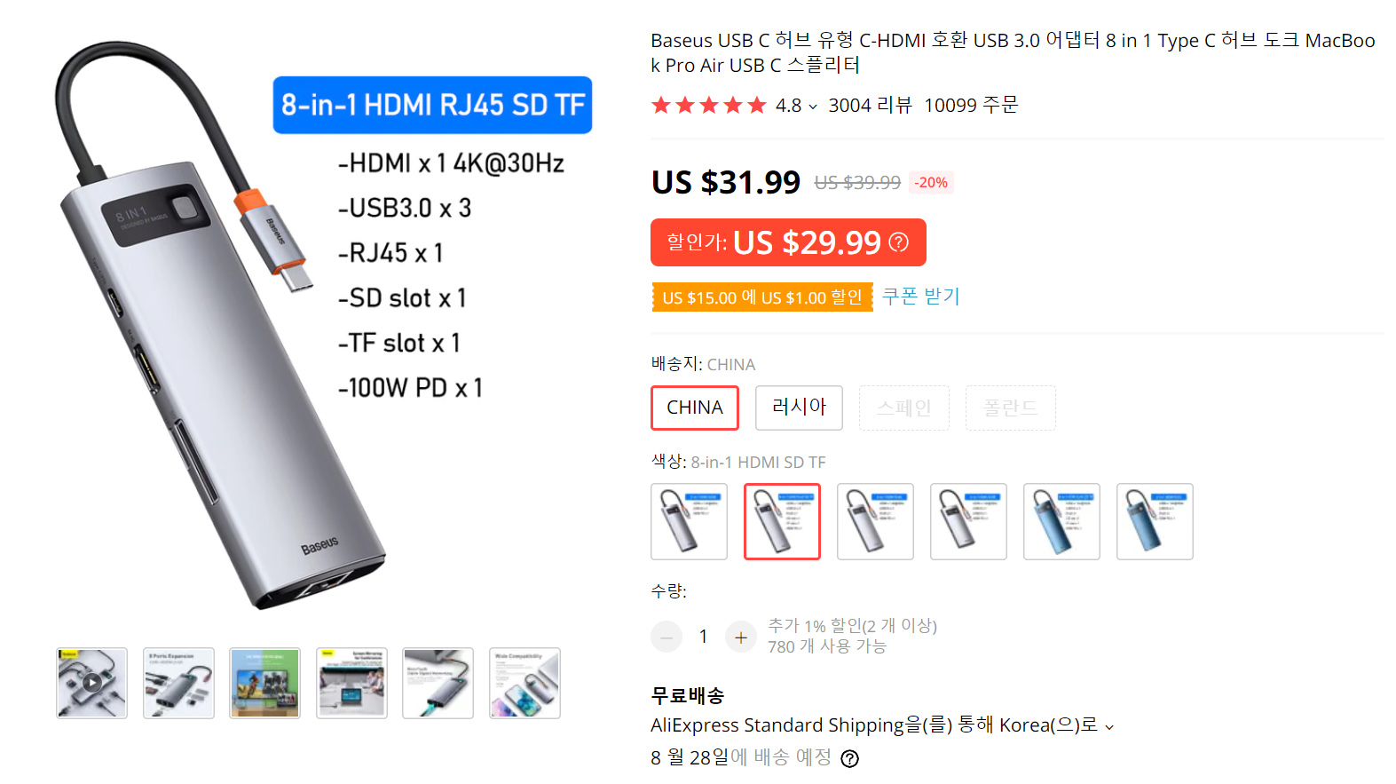 괜히 이상한 USB-C 허브 사지 마시고, 꼭 필요하다면 베이스어스 만능 허브를 구입하는 것이 속편합니다. 8-in-1의 경우에는 HDMI, RJ45(유선랜), SD메모리카드 등등 필요한 대부분의 포트를 다 가지고 있으니 만능 허브라 할 수 있죠. 필요에 따라 HDMI과 USB-A 포트에 집중한 저렴한 허브 제품도 있으니, 기호와 용도에 따라 골라 구입해보시기 바랍니다. :)