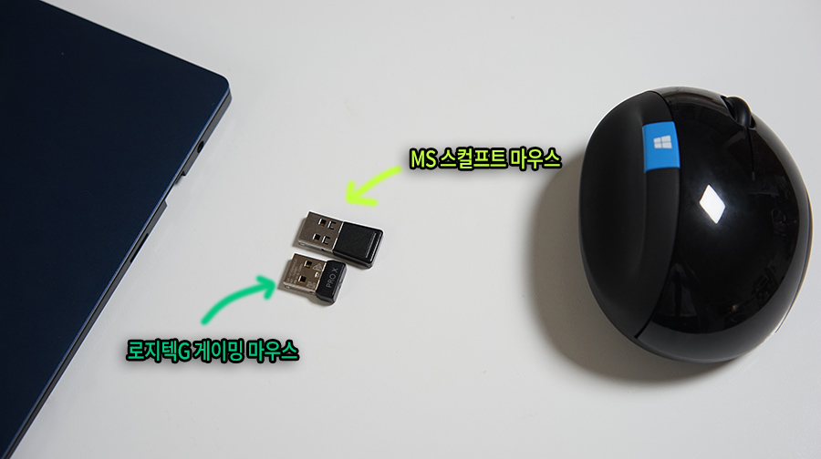 뭐랄까... 노트북에는 사용하기 조금 어려운 리시버 크기... 데스크탑 컴퓨터에만 꽂아서 사용하는게 좋겠다는 생각이 들더군요. 게다가 블루투스는 지원하지 않는 마우스이기에 더더욱...