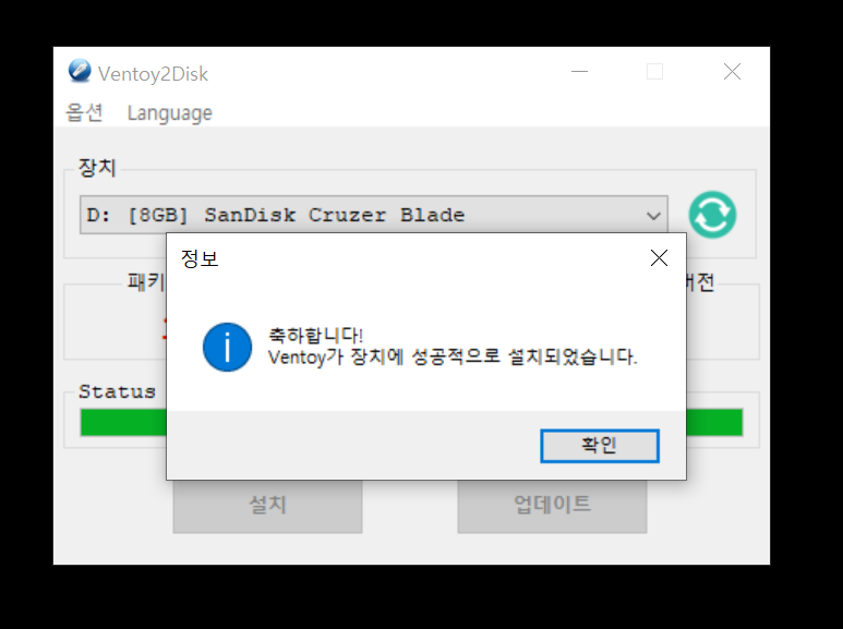 ์ค์น๊ฐ ์๋ฃ๋์๋ค์. ๊ทธ๋ฌ๋ฉด ๋์คํฌ๊ด๋ฆฌ์ ๋ค์ด๊ฐ๋ณด๋ฉด... USB ํํฐ์ ์์ญ์ด ์กฐ๊ธ ๋ฐ๋ ๊ฒ์ ์ ์ ์์ฃ .