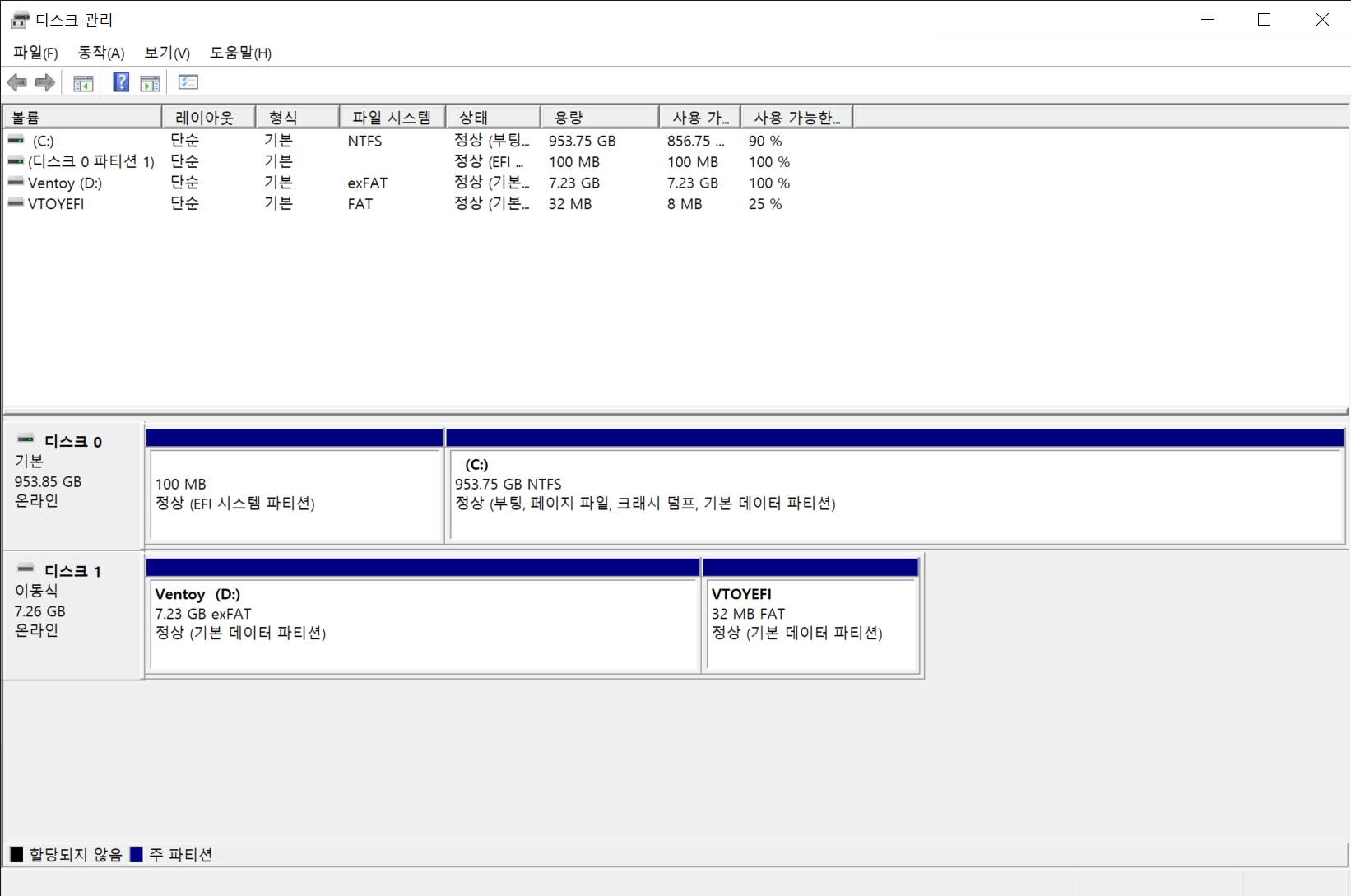 ์ค์น๊ฐ ์๋ฃ๋์๋ค์. ๊ทธ๋ฌ๋ฉด ๋์คํฌ๊ด๋ฆฌ์ ๋ค์ด๊ฐ๋ณด๋ฉด... USB ํํฐ์ ์์ญ์ด ์กฐ๊ธ ๋ฐ๋ ๊ฒ์ ์ ์ ์์ฃ .