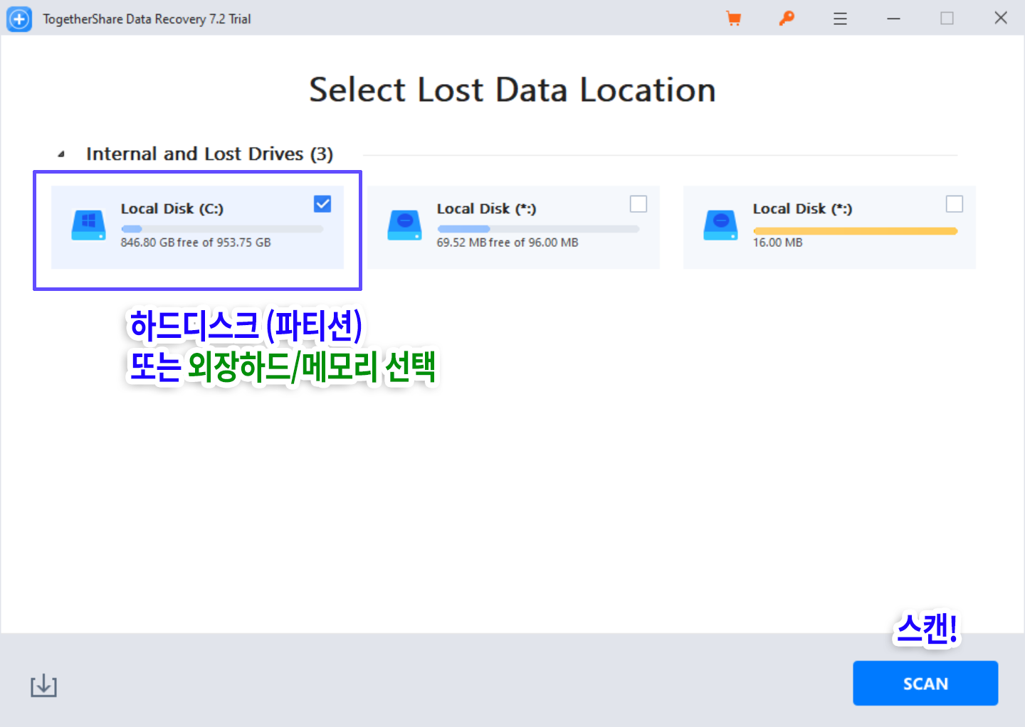 ์ฌ๊ธฐ์ ์ค์ํ ๊ฒ์ ๋ง์ฝ ์ง๊ธ ์ค์น๋ฅผ ํ๋ ค๋ ์ปดํจํฐ C:์ ๋ฐ๋์ ๋ณต๊ตฌํด์ผ ํ๋ ํ์ผ์ด ์๋ค๋ฉด, C:์ ์ค์น๋ฅผ ํ๋ ๊ฒ ๋ณด๋ค๋ ๋ค๋ฅธ ์ปดํจํฐ์ ํฌ๊ฒ๋์์ด ๋ณต๊ตฌ ํ๋ก๊ทธ๋จ์ ์ค์นํ๊ณ , ๋ณต๊ตฌํ ํ์ผ์ด ๋ค์ด ์๋ ํ๋๋ ๋ฐ๋ก ์ฐ๊ฒฐํด์ ์งํํ์๋ ๊ฒ์ด ๋ณต๊ตฌํ๋ฅ ์ ๋์ผ ์ ์์ต๋๋ค. ์ผ๋จ ๋ฐ์ดํฐ๊ฐ ๋ฎ์ด์ฐ์ฌ์ง๋ฉด ๋ณต๊ตฌ์จ์ 0% ๊ฐ๊น์ฐ๋๊น์.