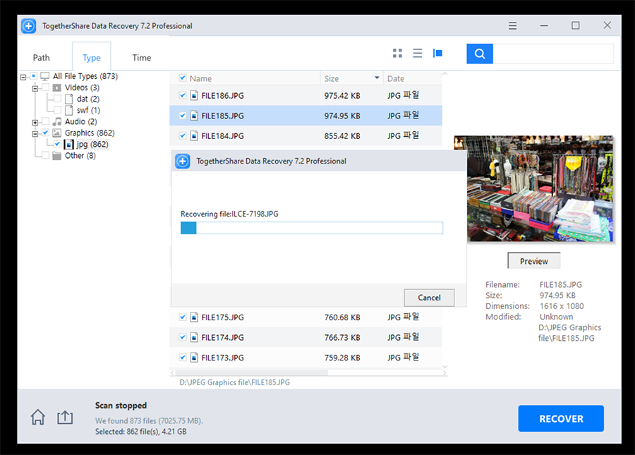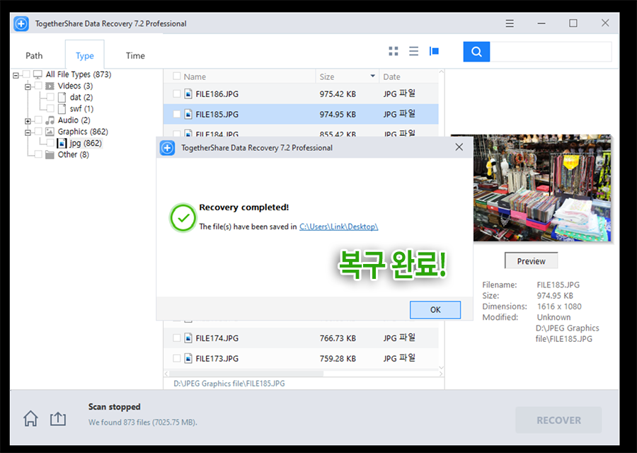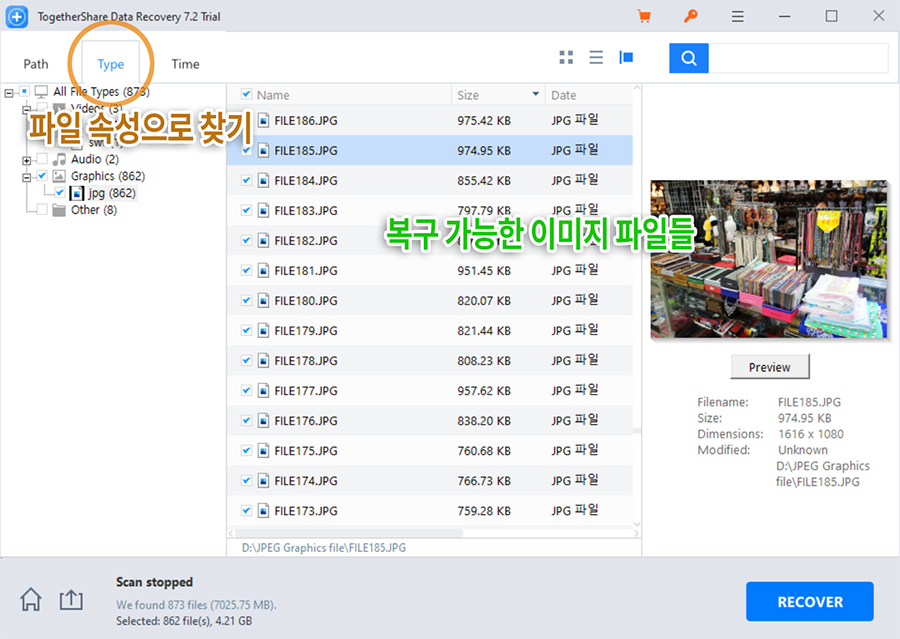 ์์ ๊ฐ์ด ๋ณต๊ตฌ๊ฐ ๊ฐ๋ฅํ ๋๋ถ๋ถ์ ์ฌ์ง ์ด๋ฏธ์ง๋ค์ด ๋ฏธ๋ฆฌ๋ณด๊ธฐ๊ฐ ๋๋ ๊ฒ์ ์ ์ ์์ต๋๋ค. ์ฌ์ง ๋ช์ฅ์ ๋ณต๊ตฌํ๋ ์ฉ๋๋ก๋ ๋ค์ด๋ก๋ ๋ฐ์ Free ๋ฒ์ ์ผ๋ก๋ ์ถฉ๋ถํ์ค ๊ฑฐ๊ตฌ์. ๋ง์ฝ ์ฉ๋์ด ๋ง๋ค๊ฑฐ๋, ๋ณต๊ตฌ๋ฅผ ํด์ผ ํ๋ ํ์ผ๋ค์ด ์ฌ๋ฌ๊ฐ๋ผ๋ฉด ์๋์์ ์ ์ ๋ผ์ด์ผ์ค๋ฅผ ๊ตฌ์ ํ์๋ฉด ์ ํ์์ด ๋ณต์์ด ๊ฐ๋ฅํ ๋๋ถ๋ถ์ ์ฌ์ง ํ์ผ์ ๋ณต๊ตฌํ์ค ์ ์์ ๊ฒ๋๋ค. ์ฌ์ค ๋ณต๊ตฌ์จ์ด 100%๋ผ๊ณ ์ฅ๋ดํ ์๋ ์์ง๋ง, ๋ฐ์ดํฐ๊ฐ ๋ฎ์ด์์ด์ ธ์ง์ง๋ง ์์๋ค๋ฉด ๋งค์ฐ ๋์ ํ๋ฅ ๋ก ๋ฐ์ดํฐ ๋ณต์์ด ๊ฐ๋ฅํ์ฃ .