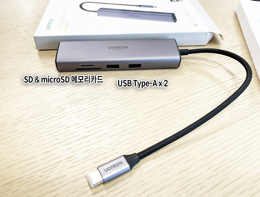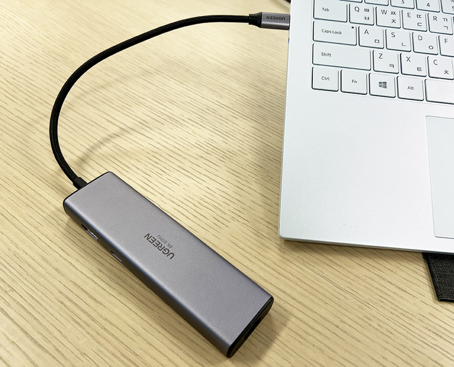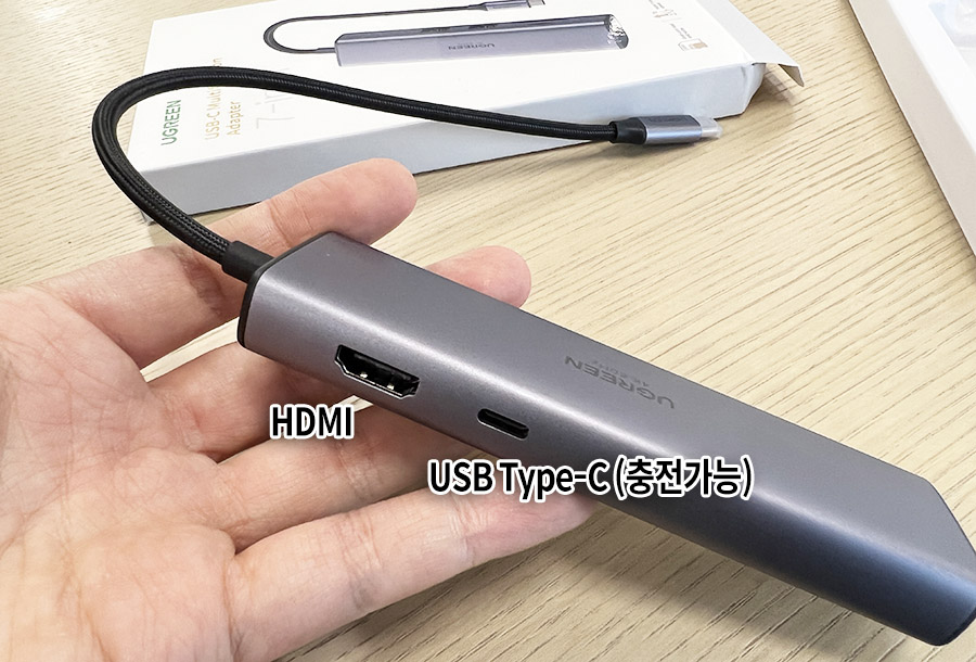 제 경우에는 허브를 사용할 때 USB PD 충전을 잘 사용하지 않지만, 이 제품은 USB PD 100W 지원을 하여 PD 충전기를 꽂고 충전까지 겸할 수 있습니다. 특히 Ugreen 7in1 USB-C 허브는 4K 60hz 연결이 가능하기 때문에 메리트가 있습니다. 맥북이나 맥북에어처럼 확장포트가 부족한 노트북을 사욯하시는 경우 유그린 허브 제품을 추천해봅니다.