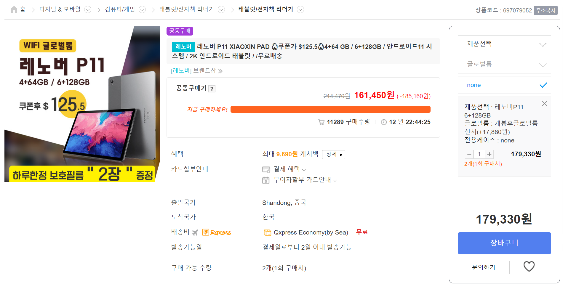 램 4GB, 64GB 스토리지 보급형 모델을 구입하면 더 저렴하겠지만, 그래고 램 6GB, 128GB 스토리지를 가진 업그레이드 모델이 더 효율이 좋기에 선택해보면 가격이 17만 9천원 정도로 나오는데요.