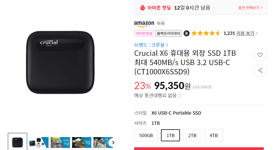 :: Crucial X6 휴대용 1TB SSD 구입하러 바로가기 ::
