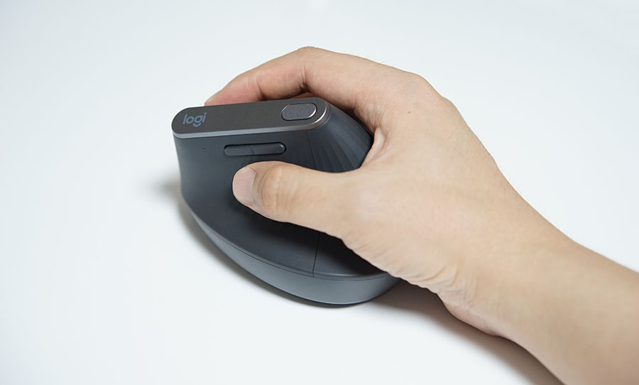 실제로 사용해보면 위와 같은 느낌이며, 확실히 손목 각도가 수평으로 틀어서 유지해야 하기 때문에 근육이 긴장되는 일반 마우스 그립과는 달리, 로지텍 MX 버티컬 마우스는 자연스러운 각도로 쥐면 되기에 손목에 무리가 확실히 덜 갑니다.