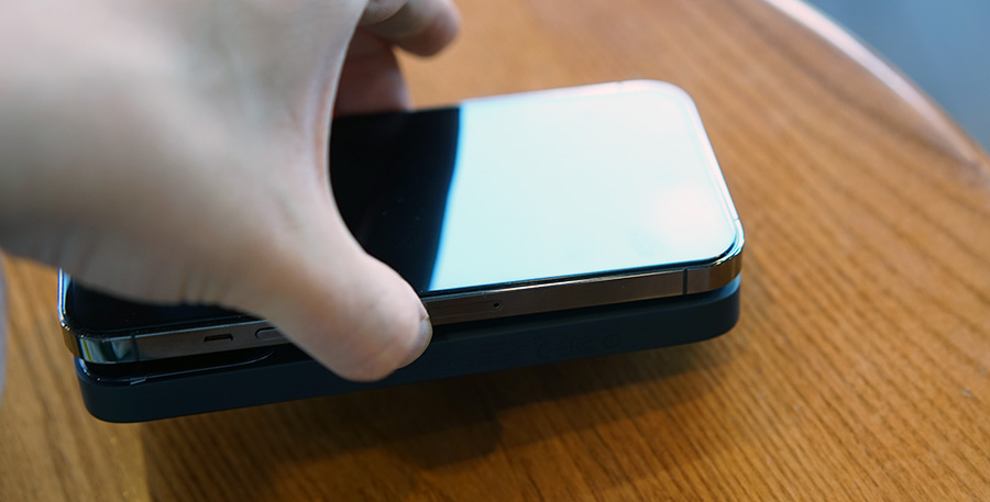 정말 맥세이프가 되나? 하고 사용하고 있는 아이폰13프로는 붙여봤는데, 잘 붙는 편입니다. 대신 맥세이프 호환 케이스가 아니면 딱 붙지는 않고, 자력이 느껴지는 정도 입니다.