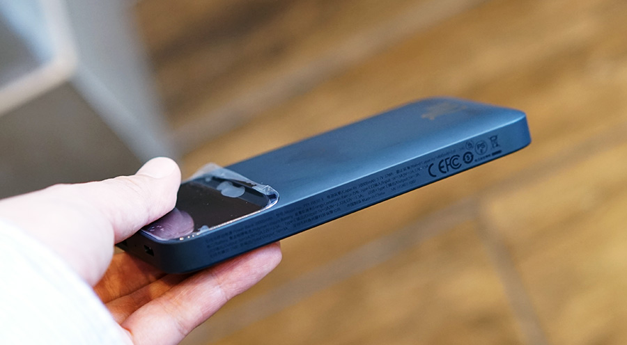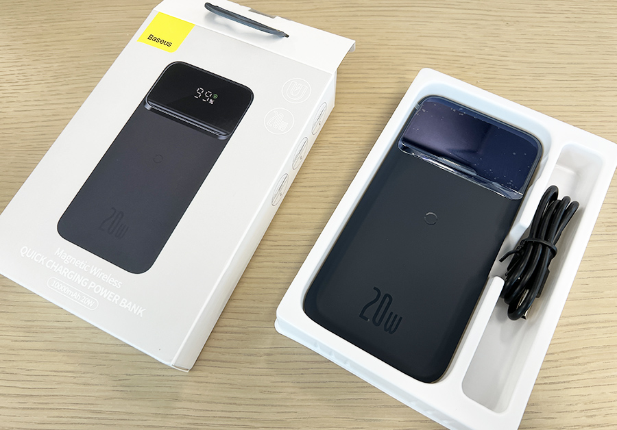보조배터리를 들고 다니는 것이 가끔 귀찮은 이유가 맞는 케이블도 같이 가지고 있어야 한다는 것인데, Baseus에서 나온 이 보조배터리는 USB-A USB-C 포트를 함께 까지고 있고, 무선충전 지원하는 기기는 살짝 올려두고 버튼만 한번 눌러주면 충전이 되기에 추천해볼만 합니다. 게다가 아이폰12, 아이폰13 유저들은 맥세이프까지 호환이 되죠.