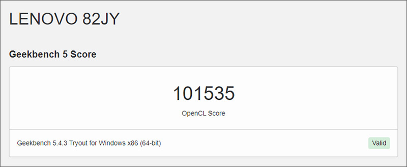 간단하게 그래픽 성능을 알아볼 수 있는 OpenCL 점수는 101535점입니다.