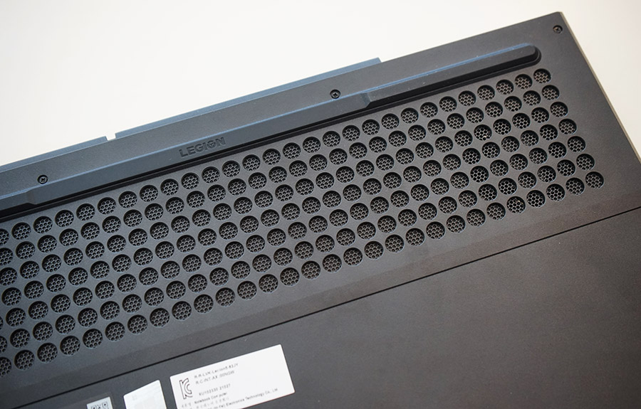 성능 체크를 하기 전에 쿨링설계를 조금 살펴보면, 노트북 하단 부분에 큼직하게 뚫여있는 통풍구가 매우 인상적입니다. 물론 측면과 뒷면에도 내부에서 발생하는 열을 배출하기 위한 통풍 설계가 되어 있는데요. 타사 게이밍 노트북들과는 달리 레노버 리전의 Coldfront 기술로 발열처리가 매우 뛰어난 편입니다. 그래서 발열로 인한 스트레스는 매우 적은 편이죠.
