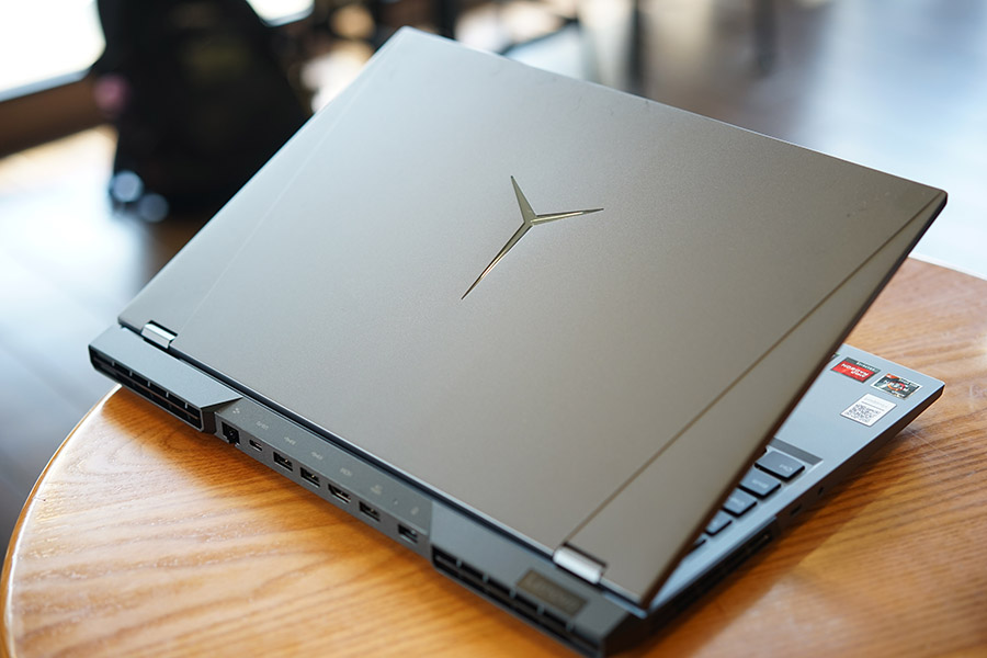 리전5프로 게이밍 노트북은 검투사를 연상시키는 리전 로고가 들어가 있는 것이 특징입니다. 사용 중일 때는 예전 애플의 맥북 시리즈 처럼 로고에 LED 불빛이 들어도록 되어있죠.