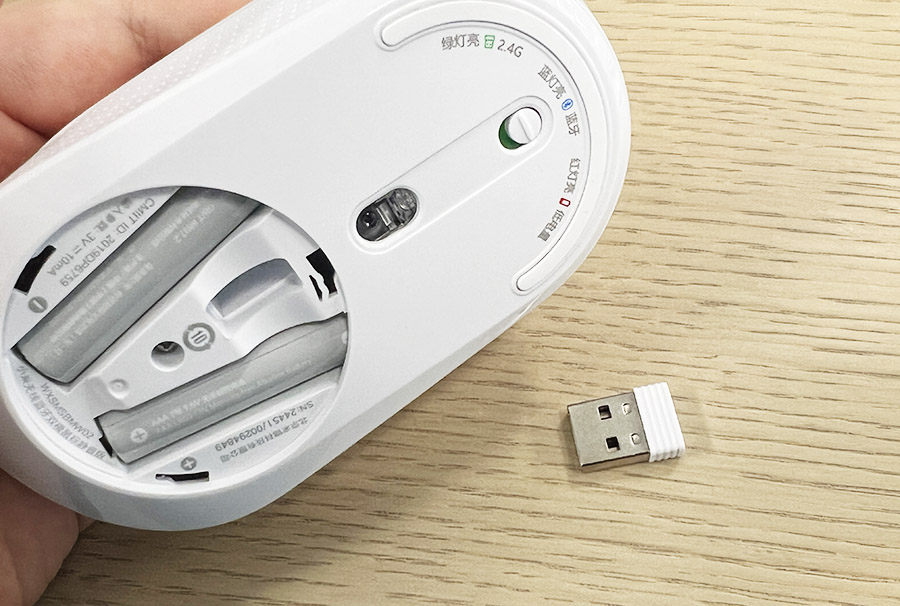 2개의 AA 건전지가 들어있네요. 그리고 중앙에는 USB 리시버가 수납되어 있습니다.