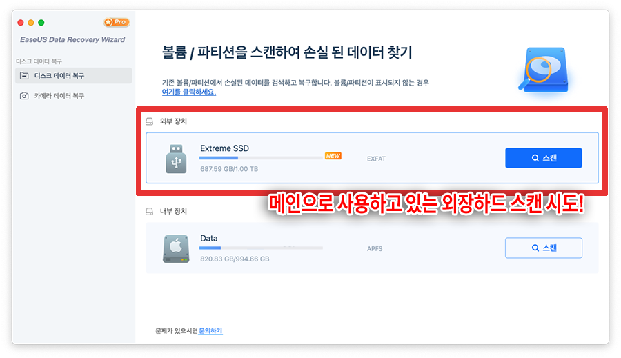 ์ด์ง์ด์ค ๋ฐ์ดํฐ ๋ฆฌ์ปค๋ฒ๋ฆฌ ์์ ๋ ํ์ผ ๋ณต๊ตฌ ์ฑ์ ๋ง๊ฐํ ํ์ผ ๋ณต๊ตฌ์ ํ ์คํธ ํด๋ณด๊ธฐ ์ํด ๋งฅ์์ ์ธ์ฅ SSD (์ธ์ฅํ๋)๋ฅผ ์ฐ๊ฒฐํด์ ํด๋น ๋์คํฌ๋ฅผ ์ค์บํด๋ณด์๋๋ฐ์. ๋๋๊ฒ๋ ์ ๊ฐ ์ด ์ธ์ฅํ๋๋ฅผ ํ๋ฒ์ ์๋์ฐ์์ NTFS๋ก ํฌ๋งทํ์๊ณ , ๊ทธ ๋ค์์๋ ๋งฅ์์ ์ฝ๊ฒ ์ฌ์ฉํ๋ ค๊ณ exFAT์ผ๋ก ํฌ๋งทํ์๋๋ฐ, ๊ฐ ํฌ๋งท๋ณ๋ก ๋จ์ ์๋ ๋ฐ์ดํฐ๋ฅผ ๋ณต๊ตฌํด๋ผ ์๋ ์๋๊ตฐ์. ์์ ์ ์ ๊น ๋ณต์ฌํ๊ธฐ ์ํด ๋ฃ์ด๋์๋ค๊ฐ ์ง์๋ฒ๋ฆฐ ์ํ ์์ ํ์ผ๋ ๋ฐ๋ก ๋ณต๊ตฌํด๋ด๋ ๊ฒ์ ๋ณด๊ณ EaseUS Data Recovery Wizard ๋ณต๊ตฌ ํ๋ก๊ทธ๋จ์ ์๋ ฅ์ ์ค๊ฐํ ์ ์์์ต๋๋ค.
