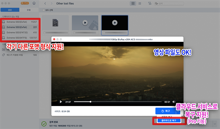 ์ธ์ฅํ๋ ํ์ผ ํฌ๋งท ํ์ ๋ณ ๋ณต๊ตฌ ๋ฐ ํด๋ผ์ฐ๋๋ก ๋ณต๊ตฌํ๊ธฐ ๊ธฐ๋ฅ๋ ์ง์!