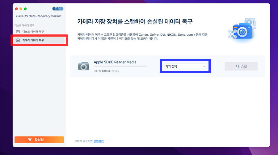 ์ ๊ฒฝ์ฐ์๋ ํ์ ์ฌ์ง์ ๋ง์ด ์ฐ๋ค๋ณด๋ ๋ฉ๋ชจ๋ฆฌ์นด๋๋ฅผ ๋ง์ด ์ฌ์ฉํ๋๋ฐ์. ์ฌ๋ฌ๋ฒ ํฌ๋งทํ๋ ์์ ๋ฉ๋ชจ๋ฆฌ ์นด๋์์ ํน์ ์ฌ์ง์ ๋์ด๋ฆด ์ ์๋์ง EaseUS Data Recovery Wizard for mac์ ์ฌ์ฉํด์ ํ ์คํธ ํด๋ณด์์ต๋๋ค. '์นด๋ฉ๋ผ ๋ฐ์ดํฐ ๋ณต๊ตฌ'๋ผ๋ ๋ฉ๋ด๊ฐ ์์ ์์ด์, ์ฌ๊ธฐ์ ๋ฉ๋ชจ๋ฆฌ์นด๋๋ฅผ ๋ฃ๊ณ '๊ธฐ๊ธฐ ์ ํ'๊น์ง ํ์ฌ ์นด๋ฉ๋ผ ๋ฉ์ด์ปค๊น์ง ์ ํํ ๋ค์ ์ค์บ์ด ๊ฐ๋ฅํ๋ฐ์. ๊ฐ ์นด๋ฉ๋ผ ๋ธ๋๋๋ง๋ค ๋ค๋ฅธ ํน์ฑ์ ๊ณ ๋ คํด์ ๋ฐ์ดํฐ ๋ณต๊ตฌ์จ์ ๋์๋ค๋ ๊ฒ์ด ๋ง์์ ๋๋ค์.