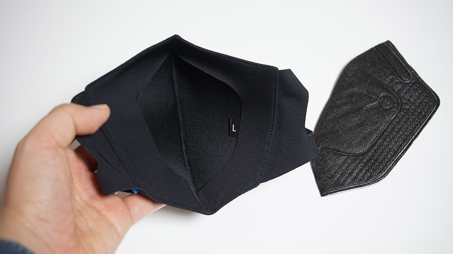 그럼 미세먼지나 꽃가루, 바이러스 감염을 효과적으로 막아줄 수 있는 필터를 꺼내서 장착해볼까요? 일단 외피도 향균효과가 있고, 필터는 5중 구조로 되어 있어 유해물질을 막아주는데 아주 효과적이라고 합니다.