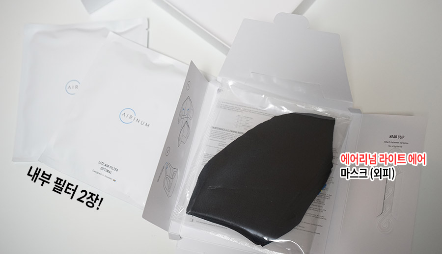아참, 구성품 중에서는 위와 같은 헤드클립도 들어있습니다. 저는 잘 사용하진 않지만, 귀가 아픈 분들은 사용해봄직 하네요. 참고로 에어리넘 라이트 에어 마스크는 신축성이 있는 편이라서 여러번 착용하다보면 내 얼굴에 딱 맞는 핏이 나옵니다.