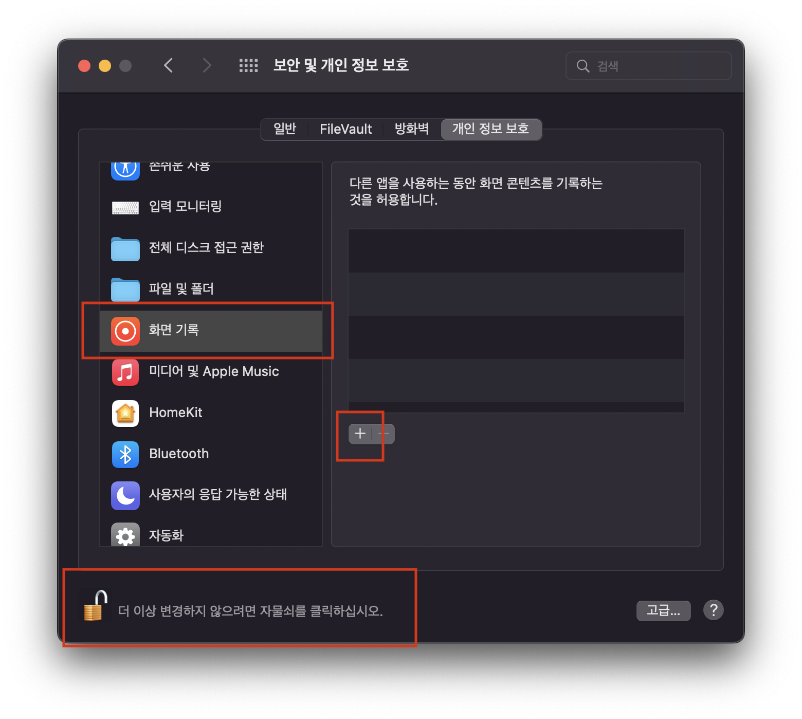 ์์ ๊ฐ์ ์ฐฝ์ด ๋ณ๊ฑฐ๋, ์๋์ผ๋ก ์์คํ ํ๊ฒฝ์ค์ > ๋ณด์ ๋ฐ ๊ฐ์ธ์ ๋ณด ํญ๋ชฉ์ผ๋ก ์ด๋ํ์ จ๋ค๋ฉด ๋ฐ์ ์๋ ์๋ฌผ์ ๋ฅผ ํ์ด์ฃผ๊ณ , ํ๋ฉด๊ธฐ๋ก ํญ๋ชฉ์์ '+' (ํ๋ฌ์ค) ๋ฒํผ์ ๋๋ฌ์ ํ๋ฉด๋ นํ ๊ถํ์ ๋ฑ๋กํด์ฃผ์ด์ผ ํฉ๋๋ค.
