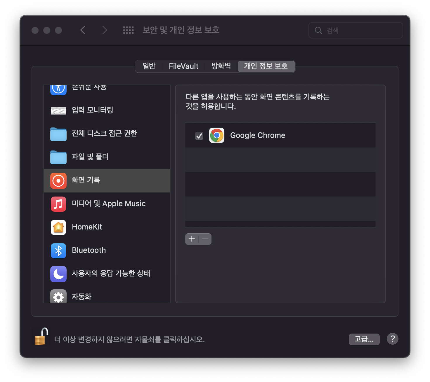 ์๋ฌ๋ฉ์์ง๊ฐ ๋ ํนํ๋ฐ์. 'Google Chrome๋ ์ ๋ด ์ปดํจํฐ์์ ํ๋ฉด ๋ นํ๋ฅผ ์ฌ์ฉํ ๊ถํ์ด ์์ ์ ์์ต๋๋ค.' ๋ผ๊ณ ๋น๋๋ค. ๋ธ๋ผ์ฐ์ ๋ ์กด์นญ์ ํด์ฃผ๋ ๊ตฌ๊ธ์ ๋ฉ์ง ํ๋ฒ์ด์ฃ ^^