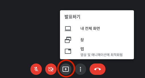 ์ด์ฐ๋์๋ ์์ ๊ฐ์ด ํ๋ฉด ๊ธฐ๋ก (ํ๋ฉด ๋ นํ) ๊ถํ์ด ์ฃผ์ด์ก๋ค๋ฉด ์ด์ ๊ตฌ๊ธ ๋ฏธํธ Google Meet ํ์ํ ๋ ๋ด ํ๋ฉด์ ๋ฌธ์ ์์ด ๊ณต์ ํ ์ ์์ต๋๋ค. :)
