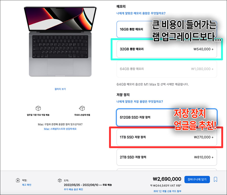 ํ๋ง๋๋ก ์ ๋ฆฌํ๋ฉด ๊ตณ์ด ๋จ์ 32GB๋ก ๋๋ฆฌ์ง ์์๋ ์ถฉ๋ถํ๋ค๋ ๊ฑฐ์ฃ ^^ ๋จ๋ณด๋ค ์คํ ๋ฆฌ์ง ์ ๊ทธ๋ ์ด๋ ๋น์ฉ์ด ํจ์ฌ ๋ ์ ๋ ดํ๊ธฐ๋ ํ๊ณ ๋ง์ ๋๋ค. (16GB ๋จ ์ถ๊ฐ๋ 54๋ง์์ด๋ ์ค์ผ ํ์ง๋ง, 512GB ์ฉ๋ ์ถ๊ฐ๋ 27๋ง์์ด๋ฉด ๋๋ค๋ ๋ง์)