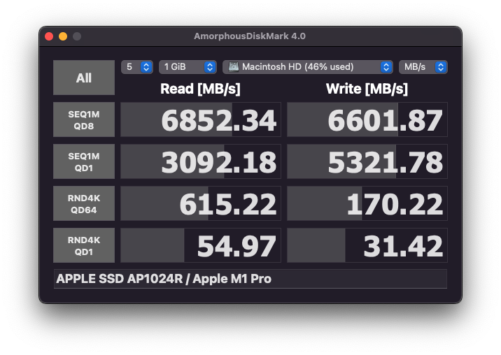 ์กฐ๊ธ ๋ ์ ํํ ์์น๋ฅผ ๋ฒค์น๋งํฌํด๋ณด๊ธฐ ์ํด ํด์ธ์์ ์ฌ์ฉ๋๋ AmorphousDiskMark 4.0์ผ๋ก๋ ์๋๋ฅผ ์ฒดํฌํด๋ณด์์ต๋๋ค. ์ฌ๊ธฐ์๋ ์์ฐจ ์ฝ๊ธฐ/์ฐ๊ธฐ ์๋๊ฐ 6600~6800MB/s๊น์ง ๋์ต๋๋ค. ์์ฒญ๋๊ฒ ๋น ๋ฅธ ์๋์ฃ .
