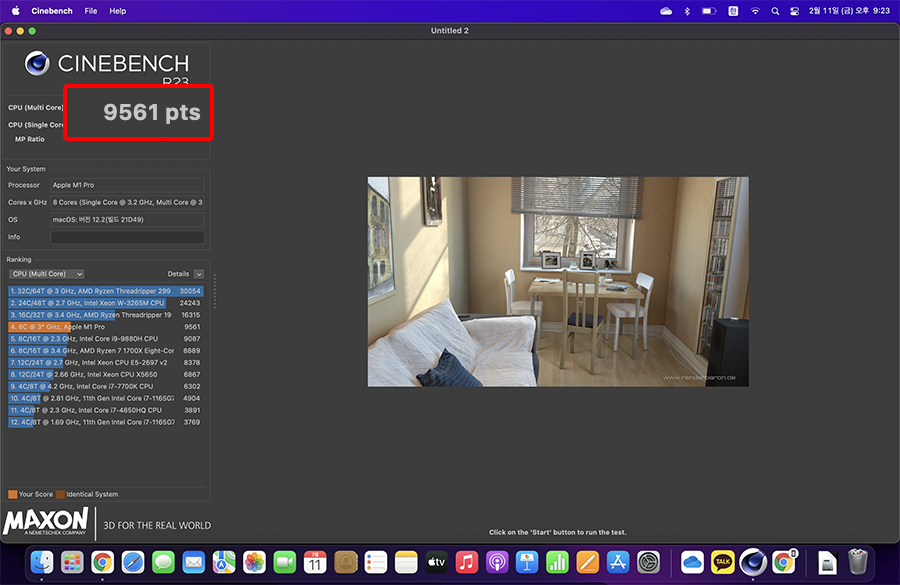 ์ ๊ทธ๋ผ ์ฑ๋ฅ์ ์์๋ณด๊ธฐ ์ํด ๋ฒค์น๋งํฌ ํ ์คํธ๋ฅผ ํด๋ณผ๊น์? ๋งฅ๋ถํ๋ก 14์ธ์น ๊ธฐ๋ณธ ๋ชจ๋ธ์์ ๊ฐ์ฅ ๋จผ์ Cinebench๋ฅผ ๋๋ ค๋ณด๋...
