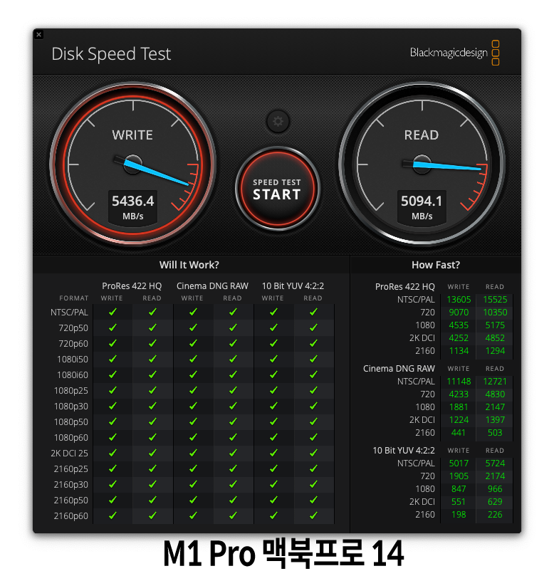Blackmagicdesign Disk Speed Test๋ฅผ ๋๋ ค๋ณธ ์คํ ๋ฆฌ์ง ์๋ ์ ๋๋ค. ์์ฐจ ์ฐ๊ธฐ์๋ 5436MB/s, ์ฝ๊ธฐ์๋ 5094MB/s๊น์ง ์ธก์ ๋๋ค์. ์ด๋น 5GB ์ ๋๋ฅผ ์ฝ๊ณ ์ธ ์ ์์ผ๋ ์ฒด๊ฐ์๋๊ฐ ๋น ๋ฅผ๋ง ํฉ๋๋ค. ์์ฆ SSD ์คํ ๋ฆฌ์ง๋ ์ ๋ง ์์ ๋ณด๋ค ๋ช๋ฐฐ๋ ๋นจ๋ผ์ง ๊ฒ ๊ฐ์์. ใ ใ