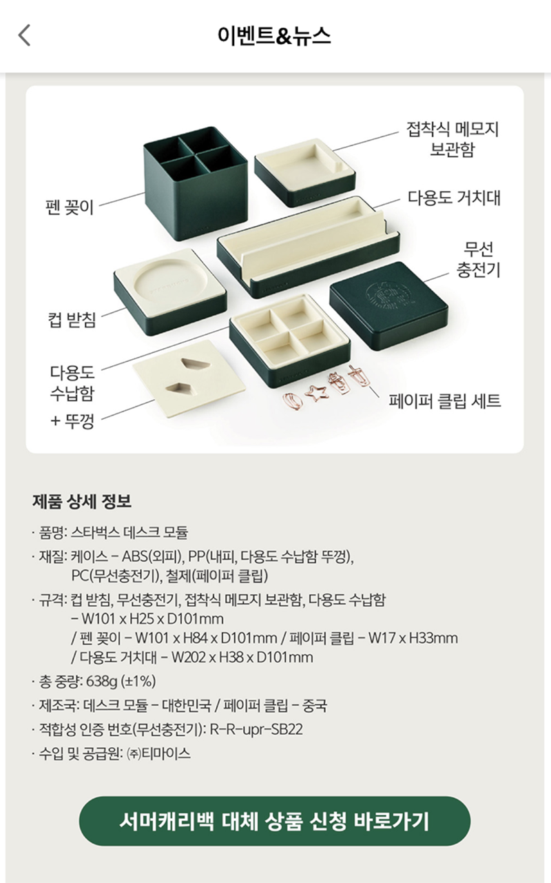 결국 저는 스타벅스 데스크 모듈이 아닌 3만원 보상으로 선택해서 받았네요 :)