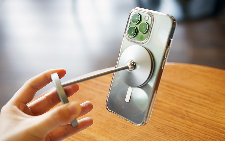 아이폰의 맥세이프 기능은 처음 나왔을 때 별로 기대를 하지 않았던 기능인데요. 지금은 관련 악세사리들이 많아지면 충전 뿐만 아니라 이렇게 거치할 때도 도움이 되는 것 같습니다.