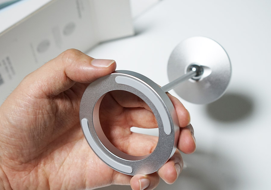 전체적인 구성품은 위와 같습니다. ^^ SSOK3 맥세이프 마그네틱 거치대 본체, 그리고 원하는 곳에 부착할 수 있는 맥세이프 마그네틱 링이 들어있죠.