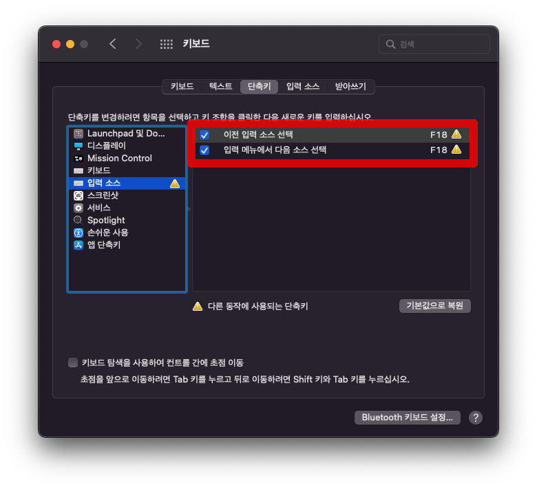 ๋ณด์ ํ์ฉ ์ค์ ์ด ๋ชจ๋ ๋ค ๋์๊ณ , ์์ ๊ฐ์ด ์ค์ ์ ํ๋ค๋ฉด ์ด์ ์ค๋ฅธ์ชฝ ์ปค๋งจ๋ํค๋ F18ํค๋ฅผ ๋๋ฅด๋ ๊ฒ์ผ๋ก ์ค์ ๋ ๊ฒ์ด์ฃ . ์ด์ ์ฌ์ ์ค๋น๊ฐ ๋๋ฌ์ผ๋ ์ค์ -> ํค๋ณด๋ -> ๋จ์ถํค ํญ -> ์ ๋ ฅ ์์ค๋ก ์ด๋ํด์ ํ์ ์ ํ ๋จ์ถํค๋ฅผ F18ํค๋ก ๋ฐ๊พธ์ด ์ค๋๋ค.