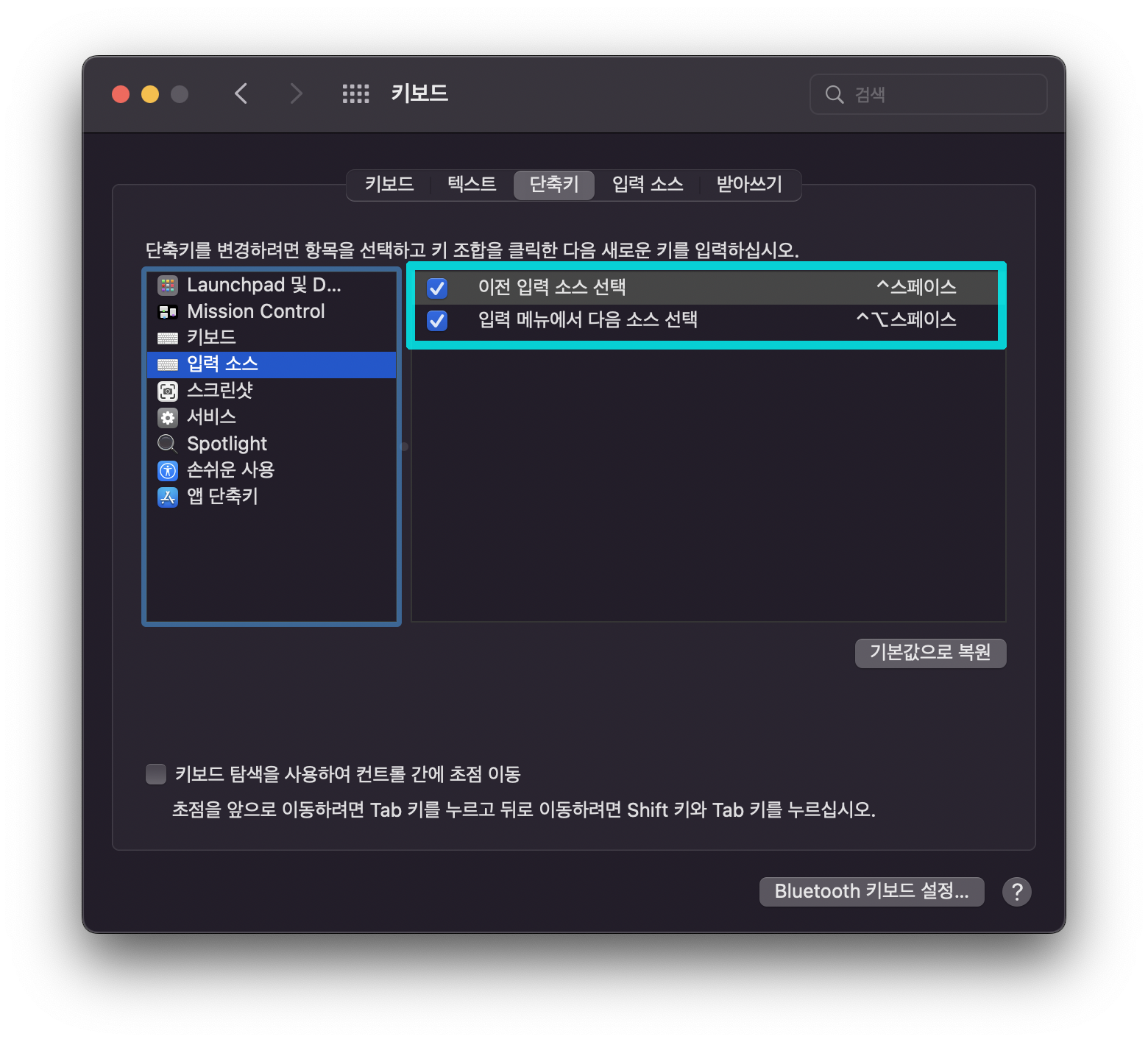์ฒ์ ๊ตฌํ ๋งฅ๋ถ์์๋ Command + Space ์์ง๋ง, OS X Sierra์ ์ ํ ๋งฅ๋ถ์ผ๋ก ๋์ด์ค๋ฉด์ Control + Space๊ฐ ํ์ค์ผ๋ก ์๋ฆฌ์ก๊ฒ ๋์๊ณ , ๋ค์ ๋ ํ๋ฒ ์บก์ค๋ฝ(Caps lock)์ด ํ์ ์ธ์ด ์ ๋ ฅ ์ ํํค๋ก ์ฌ์ฉ๋๊ฒ ๋์์ฃ .