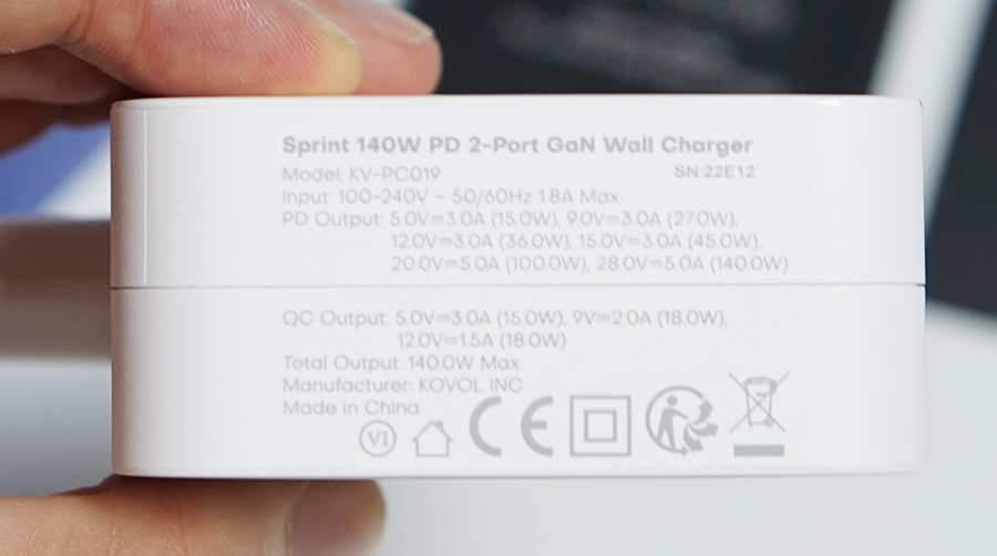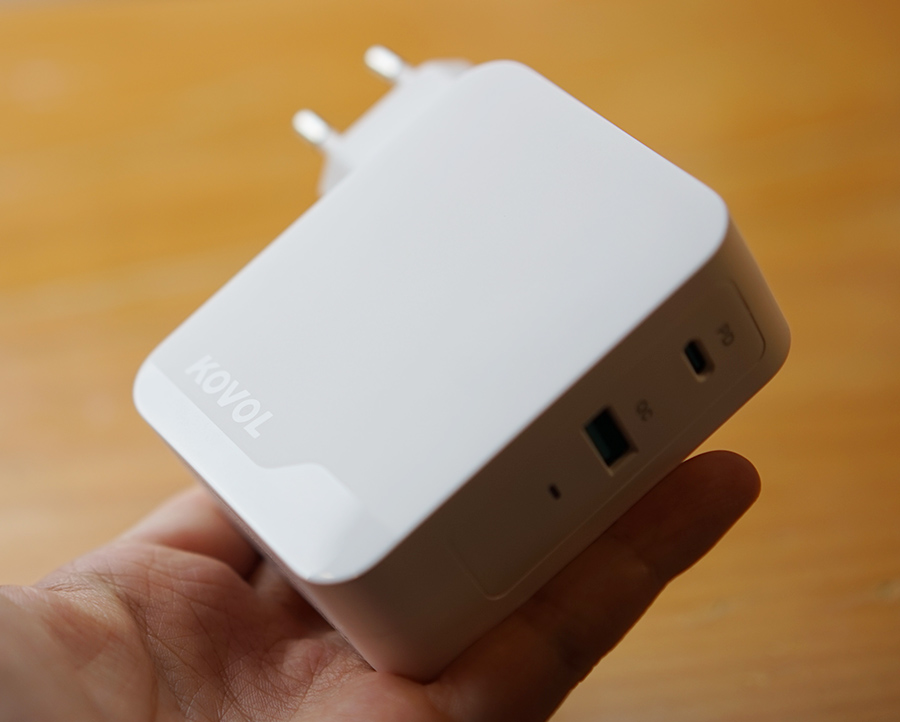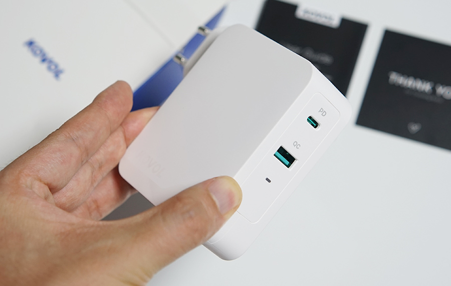 하단 부분에는 살짝 반사가 되는 재질로 KOVOL이라고 쓰여져 있는 디자인 디테일도 갖고 있네요. 사용해볼 수록 디자인과 성능이 마음에 드는 USB PD 고속 충전기 입니다.