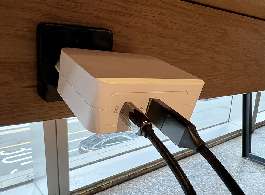 일반 충전기보다는 살짝 무게감이 있어서 집이나 회사에 두고 사용하면 좋을 것 같은데요. 그렇다고 휴대성이 많이 떨어지는 것은 아닙니다. 이걸로 왠만한 워크스테이션 노트북이나 게이밍 노트북도 충전을 할 수 있으니 어찌보면 휴대성이 매우 좋다고 할 수도 있겠습니다. ^^
