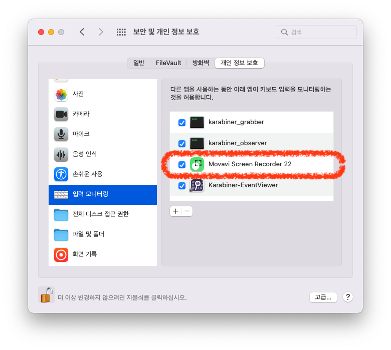 ์ฌ๊ธฐ์ ๋๋๋ ๊ฒ์ด ์๋๋ผ ํค๋ณด๋ ์ ๋ ฅ ๋ํ ์์๊ณผ ํจ๊ป ์บก์ฒ๊ฐ ๊ฐ๋ฅํ๋๊ตฐ์. ํด๋น ๊ธฐ๋ฅ์ ์ฌ์ฉํ๊ธฐ ์ํด์๋ ์๋์ ๊ฐ์ด ๋ชจ๋ ๊ถํ์ ํ์ฉํด์ฃผ์ด์ผ ํฉ๋๋ค.