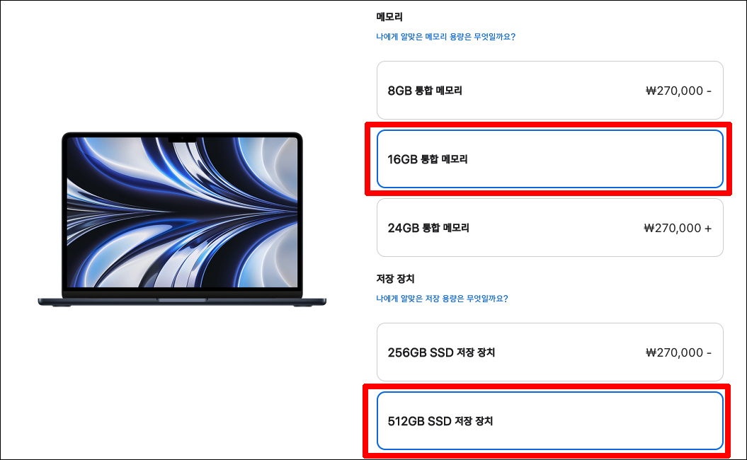M2 ๋งฅ๋ถ์์ด 2022 ๋ชจ๋ธ์ ๊ตฌ๋งคํ ๋๋ ๊ผญ ๊ธฐ์ตํ์ธ์!, ๋จ์ ๊ณผ SSD ์ ๊ธ์ ์ด๋ฒ์ ํ์ ์ ๋๋ค.