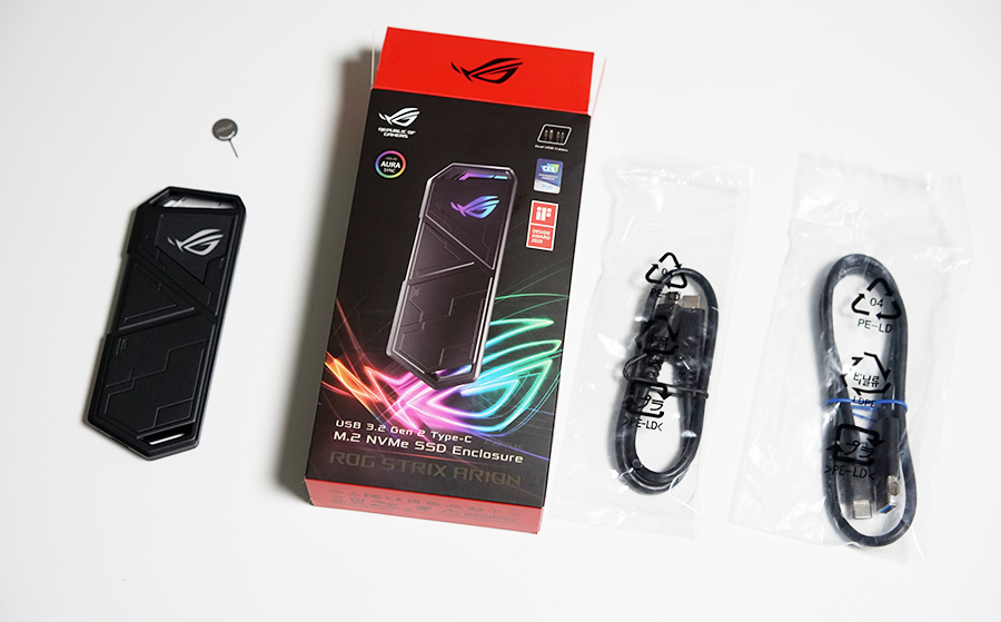 요 제품은 에이수스 (또는 아수스) ROG 아리온 외장 SSD 케이스 입니다. 라이트 버전인 ESD-S1CL도 있지만, 저는 고급형 제품을 구입했습니다.