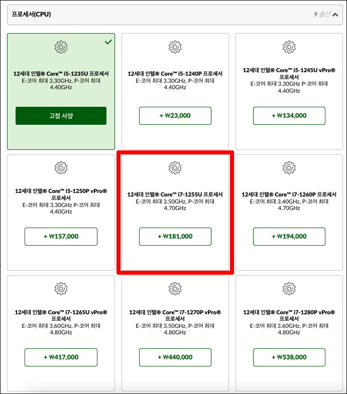 평소에서 사용패턴을 생각한 뒤 판단하면 됩니다. 노트북을 바깥에 잘 들고나가 사용하지 않고 충전기를 항상 가지고 있다면 1240P ~ 1260P를 골라고 되겠고... 성능은 비교적 P 모델보다 떨어지더라도 일반적인 업무를 할 때는 크게 상대적으로 체감이 되지 않고 배터리가 오래가는 효율성을 생각한다면 i5-1245U, 또는 i7-1255U 정도를 고르면 무난할 것 같습니다. 저는 과감하게 i7-1255U 프로세서를 추천해봅니다.