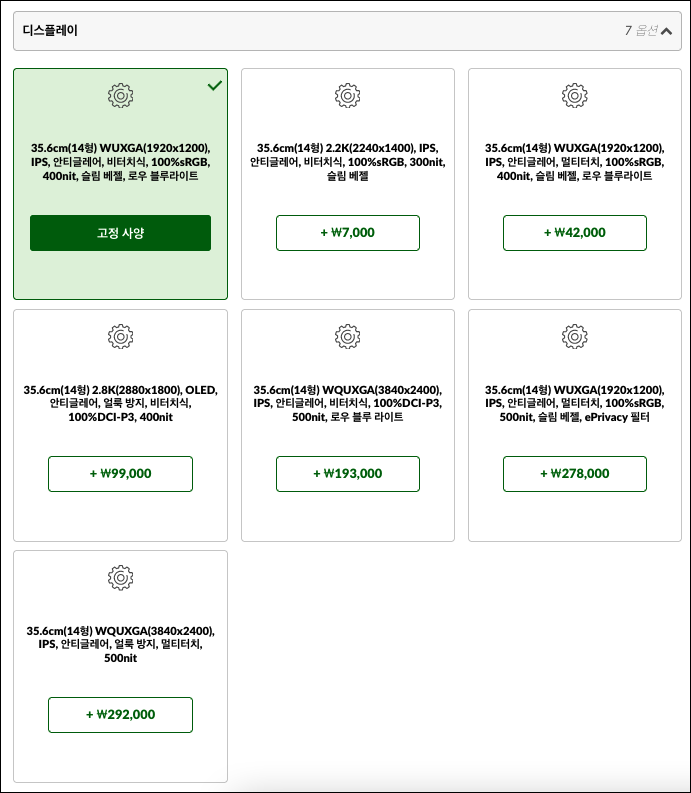 클릭해서 눌러보면, 여기서 부터 원하는 사양을 하나하나 고를 수 있습니다.