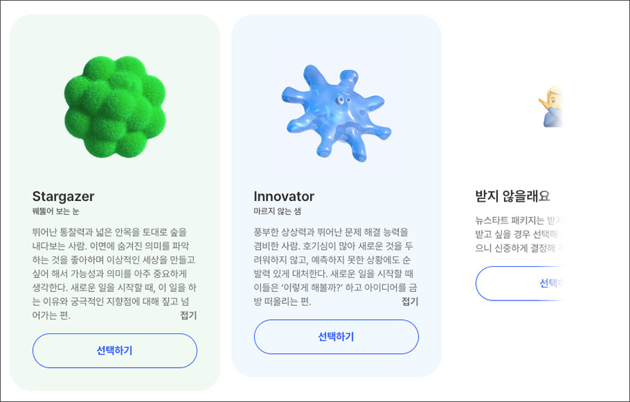 이노베이터(Innovator) 이렇게 4가지 유형과 캐릭터가 보이는데... 무엇을 고를까 고민을 하다가...
