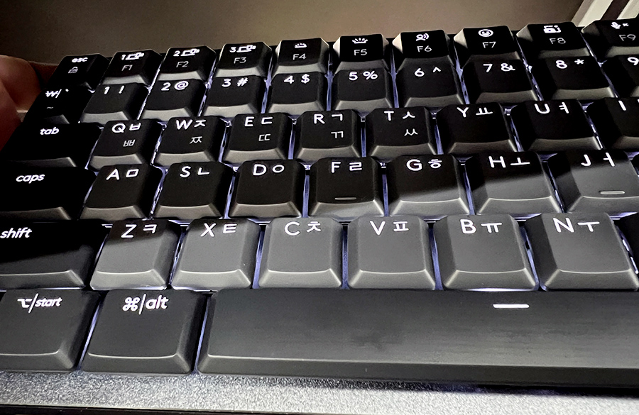 살짝 살짝 치면 소음이 잘 안나는 그럼타법을 구사할 수도 있기에, 업무용 키보드로 손색이 없네요. 물론 기계식 키보드이기 때문에 힘을 주어서 강타를 하면 일반 키보드들보다는 소음이 있는 편입니다. 타건 습관에 따라 충분히 조용히 쓸 수도 있고, 철컥철컥 피드백을 즐기면서 사용할 수도 있는 매우 키감이 우수한 제품입니다.