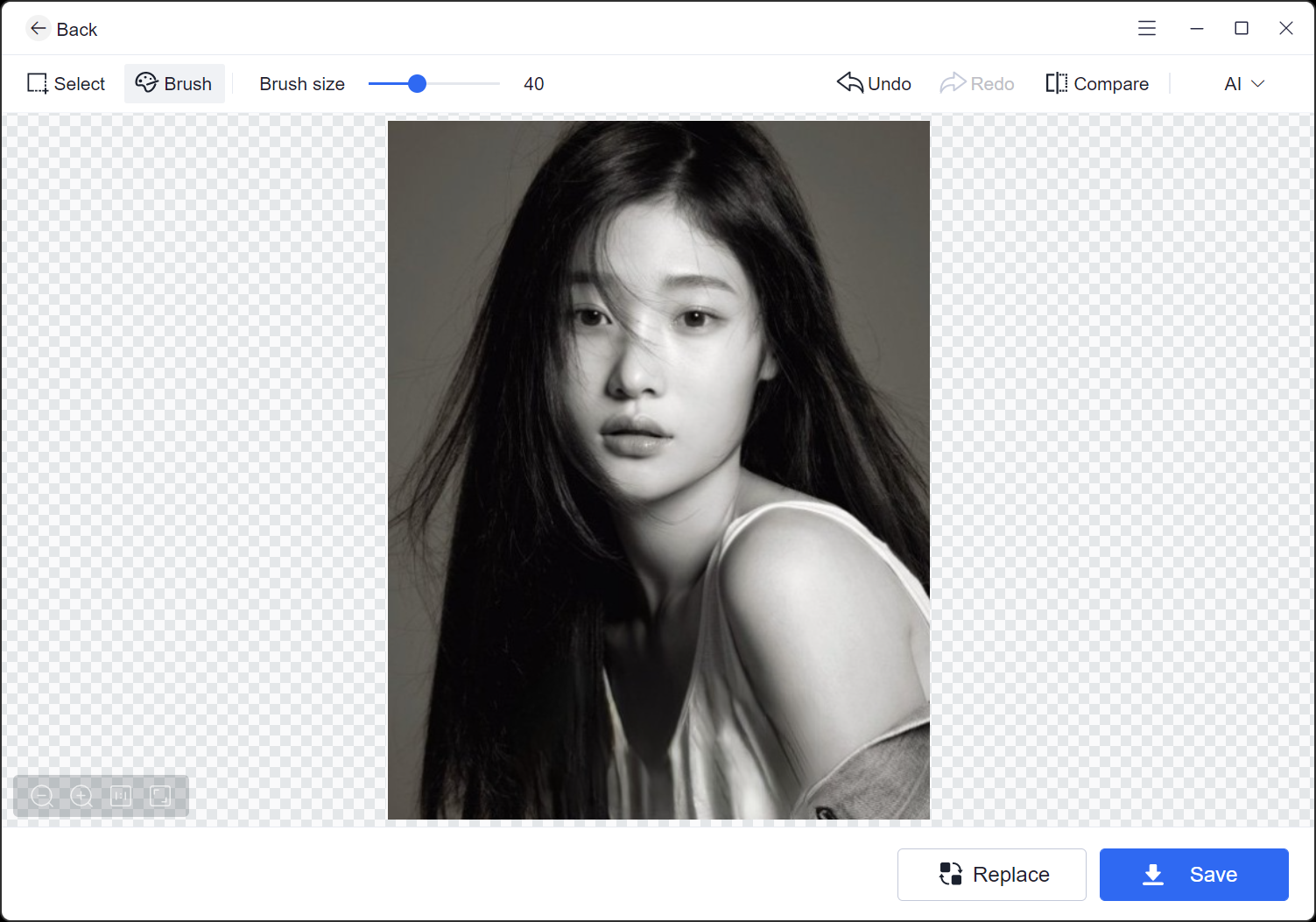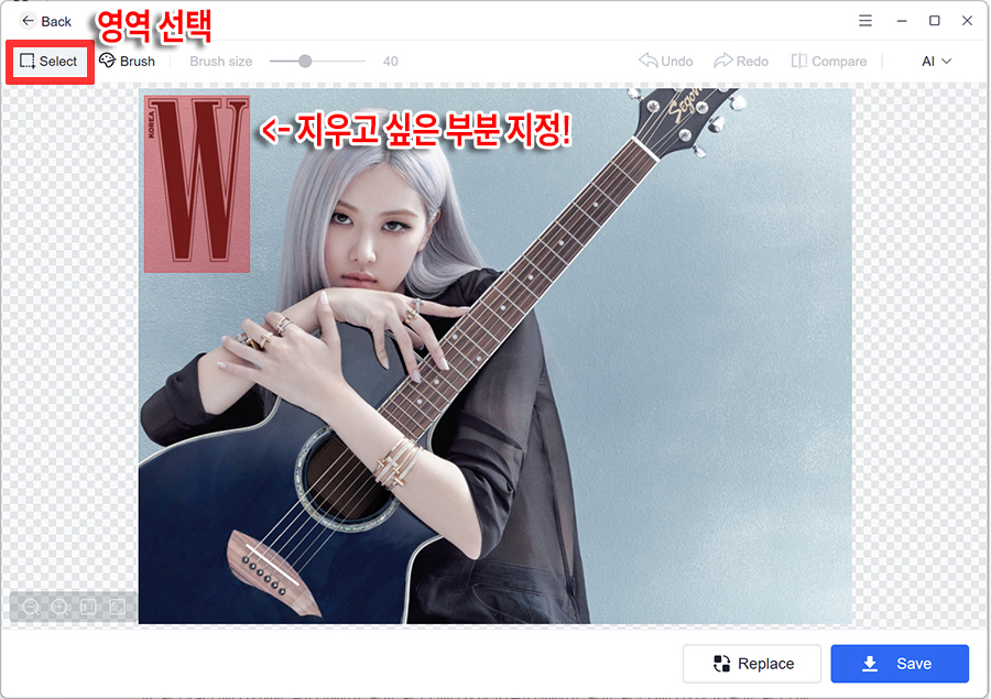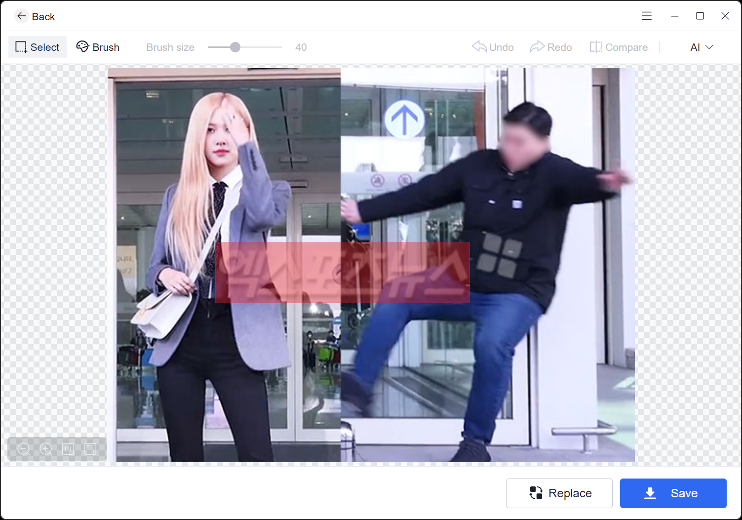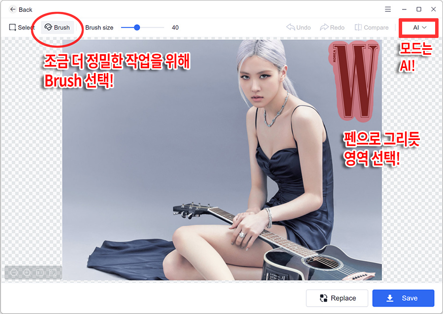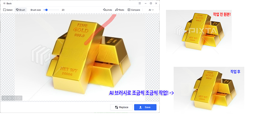 ์ฌ๋ฌ๋ฒ ํ ์คํธ ํด๋ณธ ๊ฒฐ๊ณผ, Brush๋ฅผ ์ ํํ๊ณ ์ฌ์ด์ฆ๋ฅผ ์ต๋ํ ์ ๋ฐํ๊ฒ ํ๊ณ , ๋ชจ๋๋ ์ฌ๋ฌ๊ฐ์ง๊ฐ ์์ง๋ฉด ์ญ์ AI๋ก ์ ํํด์ผ ๋งค์ฐ ๊น๋ํ๊ฒ ๋ก๊ณ ์ํฐ๋งํฌ๊ฐ ์ ๊ฑฐ๋ ์ด๋ฏธ์ง๋ฅผ ์ถ์ถ ํ ์ ์๋๊ตฐ์. Compare ๋ฒํผ์ ํตํด์ ์๋ณธ๊ณผ ์์ ํ ์ด๋ฏธ์ง๋ฅผ ์ฝ๊ฒ ๋น๊ตํด๋ณผ ์ ์๊ณ , ๋ง์์ ๋ ๋ค๋ฉด Save ๋ฒํผ์ ๋๋ฌ ์ ์ฅํ๋ฉด ๋ฉ๋๋ค. ์์ ๊ฒฐ๊ณผ๋ฌผ์ ๋ฐํํ๋ฉด์ ํด๋๊ฐ ๋ง๋ค์ด์ง๊ณ ๋ฐ๋ก ์ ์ฅ๋๊ธฐ์ ์๋ณธ์ ๋ฎ์ด์ฐ์ง๋ ์๋ค์. ^^
